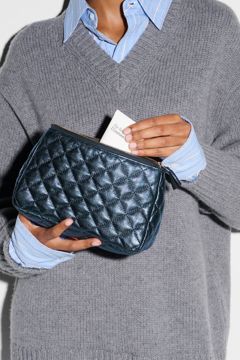mz wallace midnight metallic leather medium luna cosmetic
